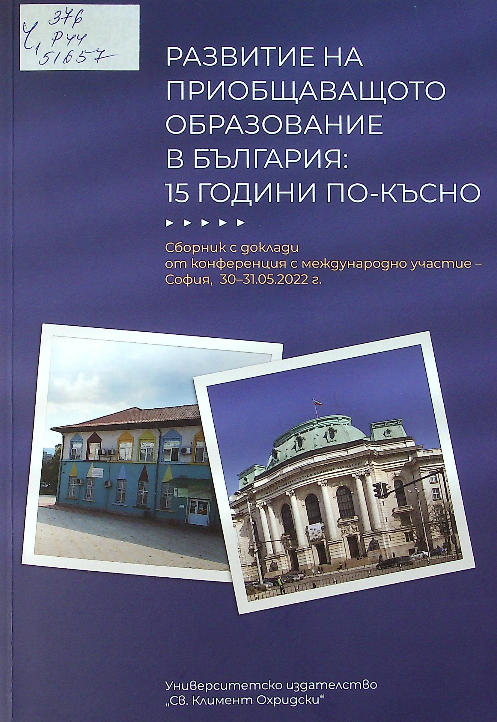ЦБ 51657, Ч1/376/Р 44 РЕГИОНАЛНА конф. с междунар. участие - София, 30-31.05.2022 г. Развитие на приобщаващото образование в България: 15 години по-късно : Сб. с доклади от Регионална конф. с междунар. участие - София, 30-31.05.2022 г. / Калоян Дамянов и др. - София : Унив. изд. Св. Климент Охридски, 2022. - 303 с. : с ил., табл., диагр. ; 24 см Изд. на Регион. център за подкрепа на процеса на приобщаващото образование, СУ Св. Климент Охридски. Фак. по науки за образованието и изкуствата. - Съдържа докл. от: К. Дамянов, М. Замфиров, Л. Кисьова, К. Златкова-Дончева, В. Огородник, И. Киркова, М. Илиева, А. Димитрова, Д. Керемедчиева, П. Даскалова-Петкова, Н. Тодорова, А. Кръстев, М. Жеркова-Арнаутска, Д. Лазарова, М. Георгиева, М. Цветкова, Ц. Ангелова, М. Цветкова-Арсова, М. Томова, М. Наков, Д. Павлова, Р. Цочева-Генчева, Т. Иванова, Вл. Иванов, Р. Попова, А. Динчева, Д. Димитрова, В. Рачева, Н. Балканска, Н. Бонев, П. Шапкова, К. Христова, Н. Николова, М. Младенова, Е. Йовчева, Б. Асенова, Кр. Давчева, П. Дескова, Ф. Краева, Кр. Димитрова-Митева. - Библиогр. след отд. докл. ; Рез. на бълг., англ.ез. ISBN 978-954-07-5532-8 Сист. N: 174913 |