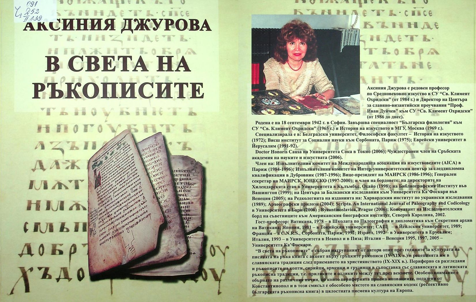 ЦБ II 139, Ч1/091/Д 52 ДЖУРОВА, Аксиния Добрева В света на ръкописите / Аксиния Джурова. - София : Унив. изд. Св. Климент Охридски, 2007. - 472 с. : с ил., сх. ; 28 см Съдържа и: Речник на основните термини ; Библиогр. с. 327-347 ; Схеми ; Фотоалбум на цв. ил. ; Геогр. показалец на ръкописите. - Биогр. данни за авт. на кор. ISBN 978-954-07-2554-3 Сист. N: 174985 |