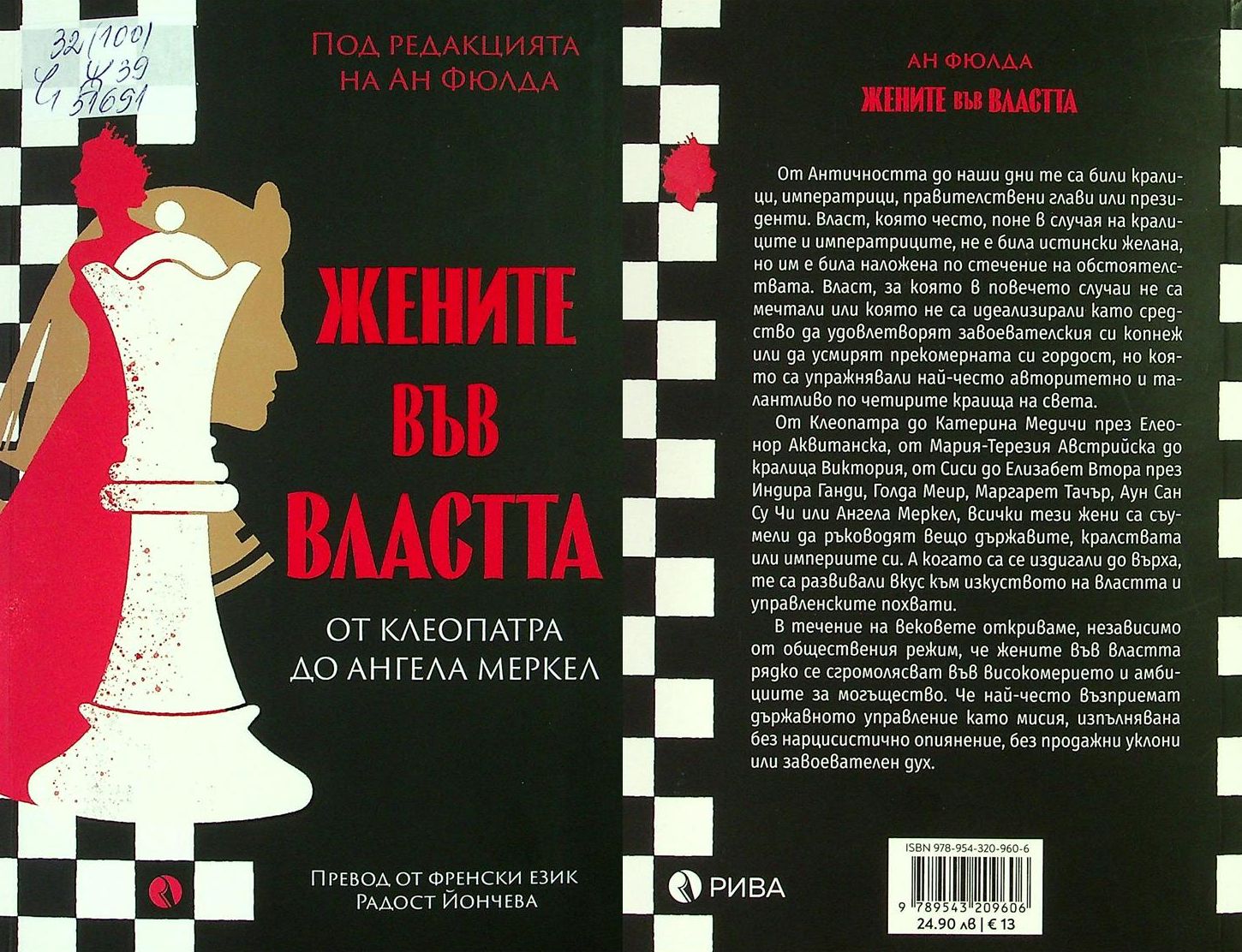 ЦБ 51691, Ч1/32(100)/Ж 39 ЖЕНИТЕ във властта от Клеопатра до Ангела Меркел : Изкуството на властта / Робер Соле и др. ; Под ред. на и с предг. от Ан Фюлда ; Прев. от фр. Радост Йончева. - [София] : Рива, 2022. - 416 с. ; 21 см Други авт.: Р. Соле, Б. Дюмезил, М. Орел, Ж. Шовел, Ж. Солнон, С. Бруке, С. Бертиер, Г. Францва, Ж. Блед, Л. дьо Мо, Е. Делалекс, Е. Дзембовски, В. Нике, Ж. Аяш, Ф. Готие, Е. Хехт, А. Фюлда, В. Югьо, С. Фалети, В. Шокас. - Библиогр. след отд. гл. ISBN 978-954-320-960-6 Сист. N: 175001 |